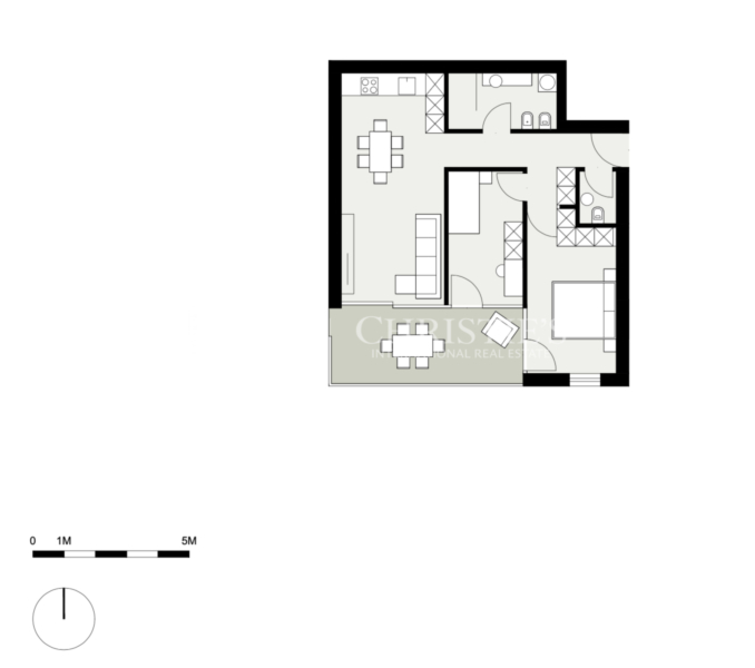 Die Wohnung besteht aus einem hellen Wohnbereich mit Küchenzeile, zwei Schlafzimmern mit jeweils direktem Terrassenzugang, einem Hauptbadezimmer sowie einem separaten Tages-WC. Ein Kellerraum gehört ebenfalls zur Immobilie.