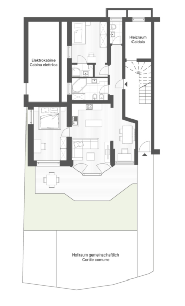 Die Wohnung befindet sich in optimalem Zustand und ist vollständig möbliert, was einen sofortigen Einzug ermöglicht. Parkmöglichkeiten sind im gemeinschaftlichen Hofraum verfügbar und runden das Angebot ab.
