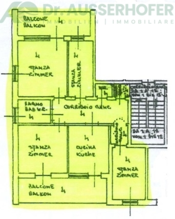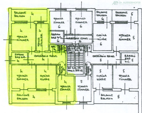 Nicht konventionierte Fünfzimmerwohnung, 5 Gehminuten vom Zentrum von St. Lorenzen entfernt, im 1. Stock eines Mehrfamilienhauses, bestehend aus: einer großen Wohnküche mit Ausgang auf einen großen Balkon, Wohnraum mit Kachelofen und Ausgang auf die überdachte Südterrasse, drei Schlafzimmer, zwei Bäder, Keller und überdachter Garagenstellplatz.