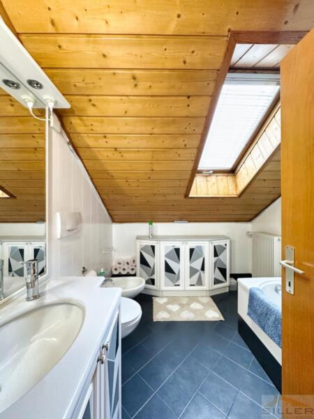 Willkommen in Ihrem persönlichen Rückzugsort, wo städtische Lebensqualität auf entspannte Ruhe trifft.Diese außergewöhnliche Maisonette-Wohnung mit 6 Räumen bietet Ihnen 112 m² pure Lebensqualität in ausgezeichneter Wohnlage, unweit des Zentrums. Die praktische Raumaufteilung auf zwei Etagen schafft die perfekte Balance: Im Erdgeschoss erwarten Sie ein gemütliches Wohnzimmer mit wärmendem Kamin, eine großzügige, helle Küche mit angrenzendem Balkon, ein separates Esszimmer sowie ein komfortables Badezimmer. Das gesamte Dachgeschoss mit 3 Zimmern gehört ganz Ihnen – die sind vielseitig nutzbar als Schlafzimmer, Homeoffice oder Hobbyraum, mit zweitem Bad und praktischem Abstellraum.Das Besondere? Absolute Ruhe ohne Nachbarn über Ihnen und maximale Privatsphäre durch die freie Lage auf drei Seiten. Die Topzone überzeugt mit kurzen Wegen ins Zentrum, zu Schulen und zur Autobahn – und dennoch genießen Sie idyllische Ruhe mit schönem Ausblick.Kellerabteil inklusive, große geschlossene Garage gegen Aufpreis verfügbar. Sofort einziehen – sofort wohlfühlen: Die Wohnung wird komplett eingerichtet übergeben, ist nicht konventioniert und umgehend bezugsbereit.