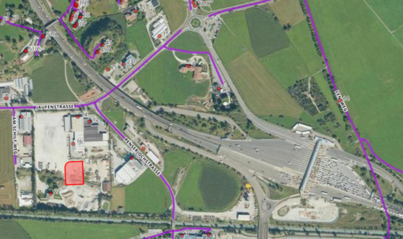 Das Grundstück liegt hinter dem Bauhof und ist von den genannten Gewerbebetrieben umgeben. In der direkten Nachbarschaft befinden sich zudem weitere, derzeit noch unbebaute Gewerbeflächen.