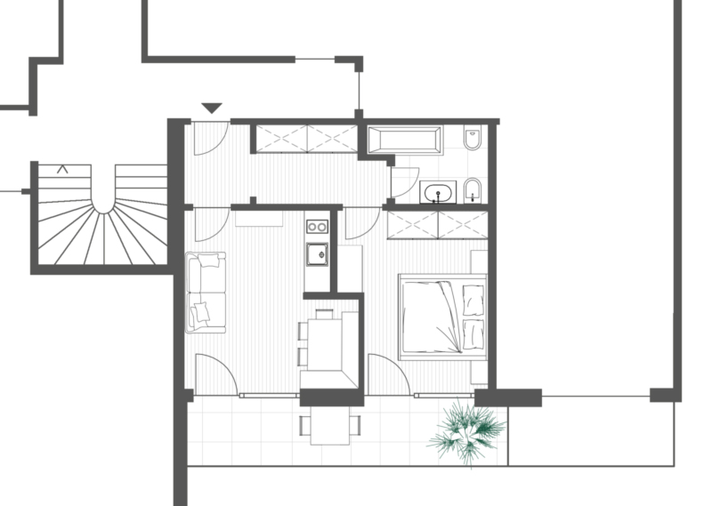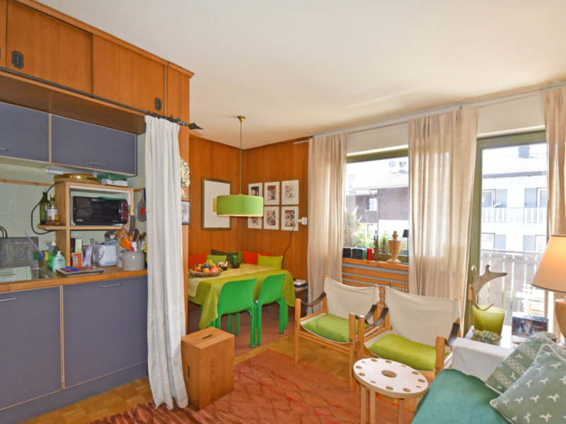 Verkauft wird das nackte Eigentum einer vollmöblierten Zweizimmerwohnung im ersten Obergeschoss. Die Wohnung umfasst einen einladenden Flur, ein helles Wohnzimmer mit integrierter Kochnische, ein gemütliches Schlafzimmer, ein gut ausgestattetes Badezimmer sowie einen Balkon, der nach Süden ausgerichtet ist – ideal für sonnige Stunden mit atemberaubenden Blick auf die Dolomiten.