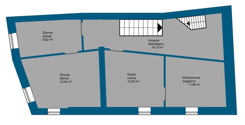 Die Immobilie ist in zwei separate Wohneinheiten unterteilt. Im Erdgeschoss befindet sich eine gemütliche 2-Zimmer-Wohnung, die sich ideal für eine Einzelperson, ein Paar oder auch zur Vermietung eignet. Darüber erstreckt sich eine weitere Wohnung als Duplex über die beiden oberen Etagen des Hauses. Diese bietet großzügigere Wohnräume und eine angenehme Aufteilung, wodurch sie sich hervorragend als Hauptwohnsitz für eine Familie eignet.