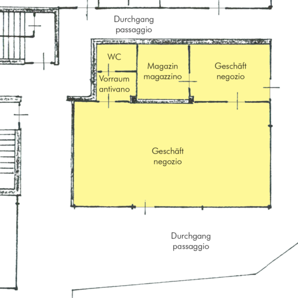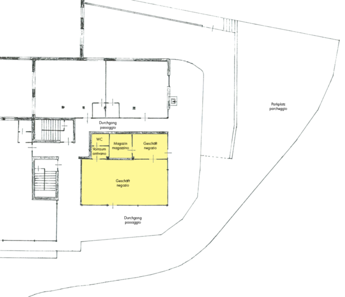 Gut sichtbares, vermietetes Geschäftslokal direkt an der Straße, mit Lagerraum, WC und reichlich Parkplatz.