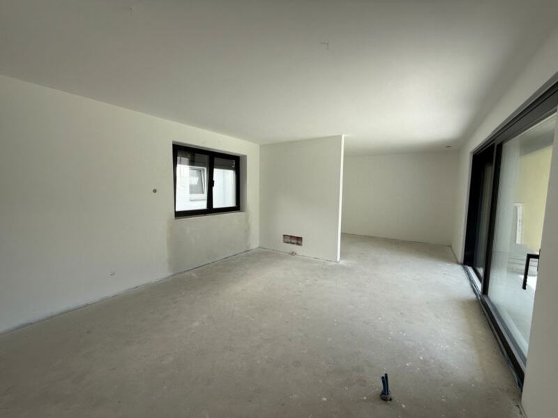 Diese neue Erdgeschosswohnung vereint Großzügigkeit und Komfort. Herzstück ist der helle Wohn- und Essbereich mit integrierter Küche, der direkten Zugang zur großen Terrasse und zum Privatgarten bietet – ideal für gemütliche Stunden im Freien. Ein Schlafzimmer, zwei flexibel nutzbare Räume (z. B. als Arbeits- oder Gästezimmer) sowie ein modernes Bad runden das Raumangebot ab.