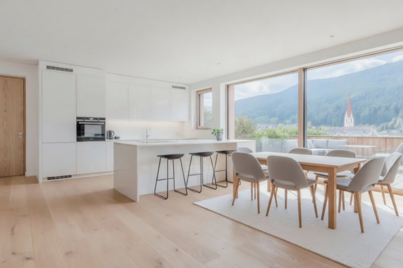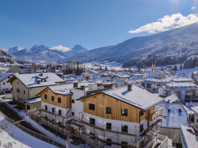 In bester Lage über dem Dorf von Welsberg entsteht diese attraktive Vierzimmerwohnung, die moderne Architektur mit hoher Lebensqualität vereint. Die Einheit, welche sich im 1. Obergeschoss eines kleinen Kondominiums mit nur 6 Wohneinheiten befindet, ist aktuell noch in Fertigstellung und wird 2026 übergeben. Sie bietet zwei geräumige Schlafzimmer, ein Badezimmer, einen großzügigen Wohnbereich und eine separate Stube, die sich ideal als Büro oder zusätzlichen Wohnraum eignet. Großzügige Fensterflächen sorgen ganztägig für eine freundliche, lichtdurchflutete Atmosphäre. Die nach Süd‑Westen ausgerichtete Terrasse lädt zum Entspannen ein und eröffnet einen herrlichen Blick auf die umliegende Bergwelt. Ein Garagenstellplatz und geräumiger Kellerraum mit Lichtschacht gehören ebenfalls zur Immobilie und sind bereits im Kaufpreis enthalten. Ruhig und erhöht gelegen, genießen Sie viel Privatsphäre und sind gleichzeitig in wenigen Minuten im Zentrum von Welsberg - perfekt für alle, die Ruhe und Zentrumsnähe verbinden möchten. Die Wohnung wird schlüsselfertig übergeben.