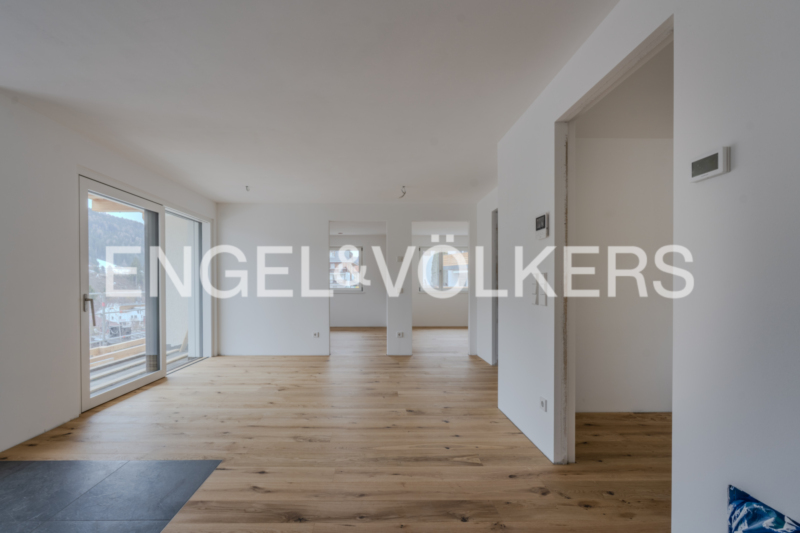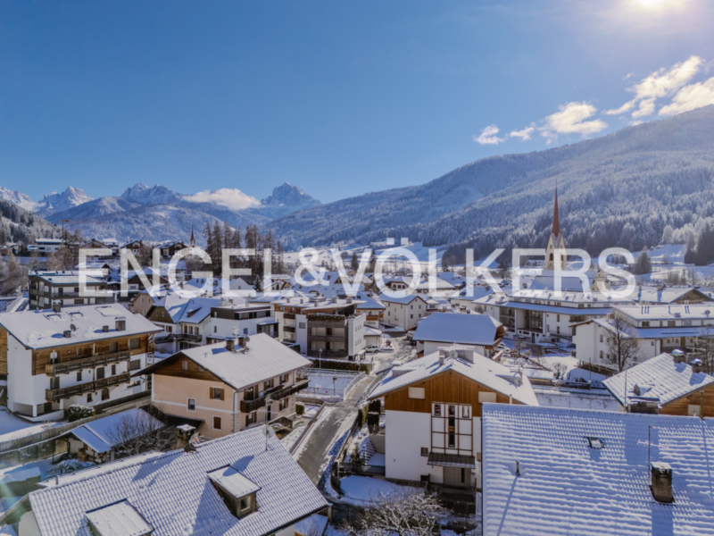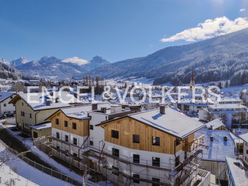 In bester Lage über dem Dorf von Welsberg entsteht diese attraktive Vierzimmerwohnung, die moderne Architektur mit hoher Lebensqualität vereint. Die Einheit, welche sich im 1. Obergeschoss eines kleinen Kondominiums mit nur 6 Wohneinheiten befindet, ist aktuell noch in Fertigstellung und wird 2026 übergeben. Sie bietet zwei geräumige Schlafzimmer, ein Badezimmer, einen großzügigen Wohnbereich und eine separate Stube, die sich ideal als Büro oder zusätzlichen Wohnraum eignet. Großzügige Fensterflächen sorgen ganztägig für eine freundliche, lichtdurchflutete Atmosphäre.
