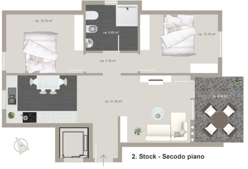Diese helle 3-Zimmerwohnung befindet sich im 2. und letzten Stock mit Aufzug und wird möbliert übergeben. Die Immobilie wurde 2005 erbaut, befindet sich nur 5 Minuten vom Zentrum entfernt, ist in einem neuwertigen Zustand und besteht aus großem Wohnzimmer mit Küche, 2 Doppelbett-Schlafzimmer, Badezimmer mit Fenster, Terrasse und Keller. Die Garage kann mit 30.000€ hinzugefügt werden. Zudem besteht die Möglichkeit weitere Stellplätze zu kaufen. Da die Wohnung konventioniert ist, kann diese nicht als Ferienwohnung genutzt werden.