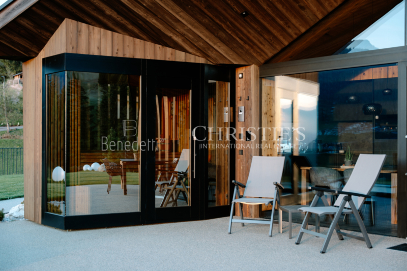 Im Außenbereich befindet sich zudem ein exklusiver privater Wellnessbereich mit finnischer Sauna und Whirlpool, ideal zur Erholung nach einem Tag auf der Piste oder auf den Wanderwegen.