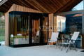 Die Außenbereiche sind so gestaltet, dass sie zu jeder Jahreszeit genutzt werden können: Eine ausgestattete Terrasse lädt zum Essen im Freien, Sonnenbaden und Entspannen inmitten der Natur ein.