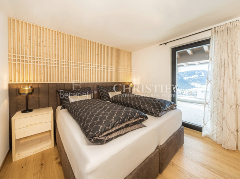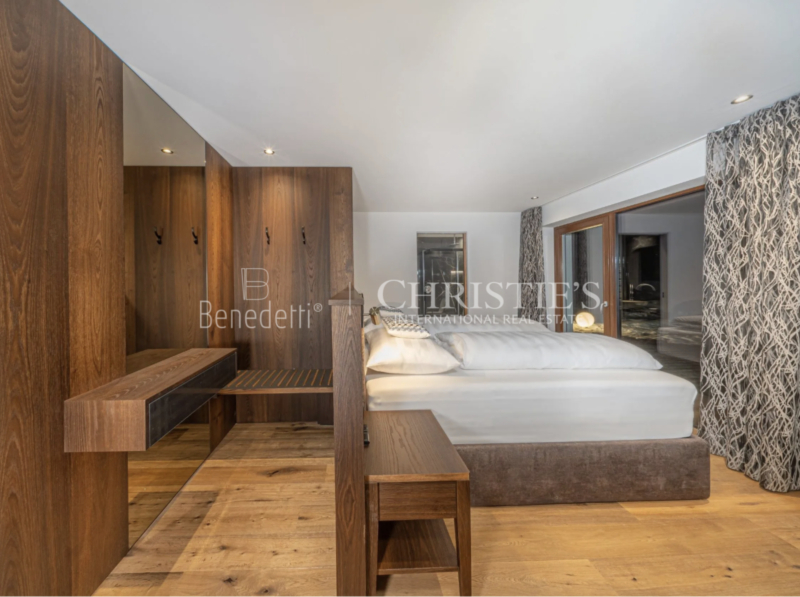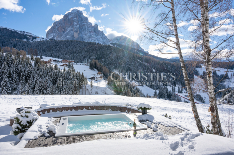 Im Außenbereich laden eine großzügige, möblierbare Terrasse und ein privater Garten mit einer wunderschönen Swimmingpool zum Entspannen ein und schaffen eine exklusive Oase mit Blick auf die Dolomiten. Die Möglichkeit, im Freien zu speisen, macht das Erlebnis inmitten von Natur, Ruhe und atemberaubender Aussicht besonders einzigartig.