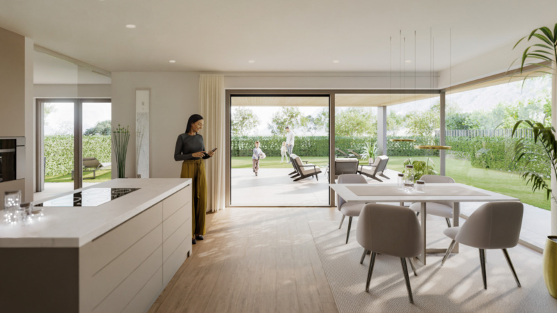 Questo esclusivo appartamento di nuova costruzione unisce in modo impeccabile un’abitabilità moderna, una realizzazione di alta qualità e un concetto energetico sostenibile. Fin dall’ingresso si percepisce l’ampiezza della zona giorno e pranzo open-space, caratterizzata da ampie vetrate con triplo vetro che avvolgono l’ambiente in una luce calda e creano un passaggio armonioso verso la grande terrazza coperta. Qui è possibile godere in ogni stagione di una splendida vista all’esterno e di un accesso diretto al soleggiato giardino privato esposto a sud. La distribuzione degli spazi, studiata con cura, comprende quattro luminose camere da letto, di cui la matrimoniale dotata di un elegante bagno en suite. Un secondo bagno finemente rifinito, un WC diurno separato e un pratico locale lavanderia completano il comfort abitativo di questa proprietà. Pavimenti in legno pregiato, porte di alta qualità e materiali scelti con attenzione conferiscono all’intero appartamento un’eleganza senza tempo. La costruzione, conforme allo standard CasaClima A Nature, garantisce un’abitazione efficiente, sana e confortevole grazie alla pompa di calore, all’impianto fotovoltaico e alla ventilazione meccanica controllata. Le finestre in legno e alluminio, la predisposizione per impianto d’allarme e climatizzazione, insieme al numero ridotto di sole sette unità abitative nel condominio, sottolineano ulteriormente l’esclusività di questa proposta immobiliare. Nel prezzo sono compresi due cantine private, mentre un garage doppio con portone elettrica può essere acquistato al prezzo di Euro 78.000. L’appartamento è riservato a persone che risiedono in Alto Adige da almeno 5 anni oppure che dispongono di un valido contratto di lavoro in Alto Adige.