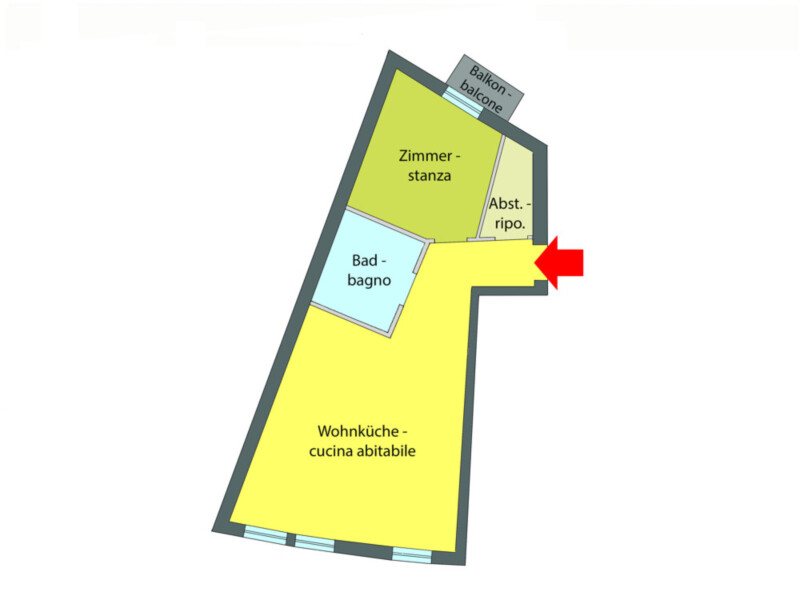 Nel centro storico di Bolzano, al 1° piano di un condominio, si trova questo grazioso bilocale. L'immobile, disponibile dal 1° gennaio 2026 , convince per la sua posizione centrale e per le sue condizioni pari al nuovo. Circa 57 m² di superficie netta abitabile sono distribuiti in cucina-soggiorno, camera da letto e bagno. Adiacente alla camera da letto si trova un tranquillo balcone interno. Un posto auto esterno può essere affittato con un supplemento di 100 € al mese.