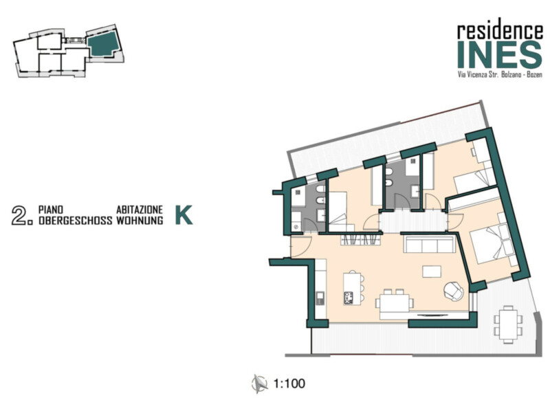 Appartamento K: Proponiamo in vendita nuovo, ampio quadrilocale con terrazza e balcone al secondo piano.