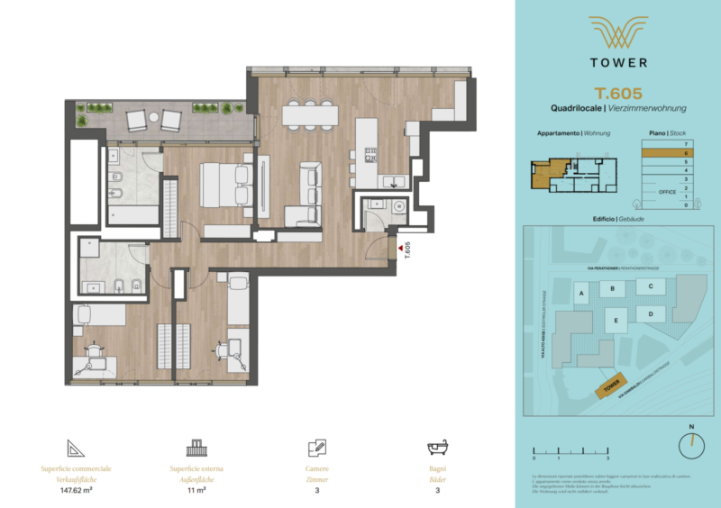 Gli appartamenti del WaltherPark rispondono a esigenze diverse: uno, due, tre o quattro vani – sono disponibili soluzioni abitative per famiglie, coppie e single, inclusi esclusivi attici.