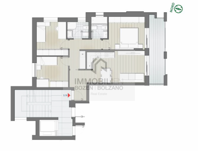 A Gries si trova questo moderno appartamento di nuova costruzione, situato al 1° piano di un elegante edificio residenziale in classe energetica A. L’unità dispone di una superficie abitabile di ca. 90,10 mq ed è caratterizzata da un’ottimale esposizione nord-est-sud, che garantisce ambienti luminosi e accoglienti. La distribuzione interna, studiata con cura, comprende un ingresso, un ampio soggiorno con angolo cottura, tre camere da letto, due bagni, un disimpegno e un balcone. Una cantina è inclusa nel prezzo. L’immobile si distingue per l’elevata qualità costruttiva, l’efficienza energetica e la favorevole esposizione.