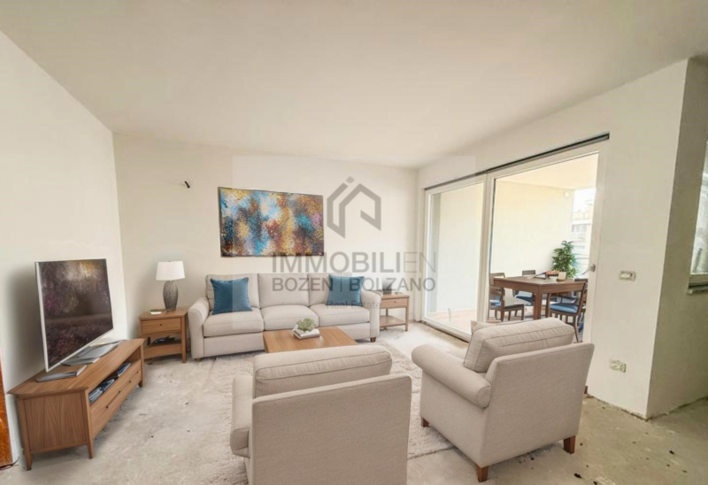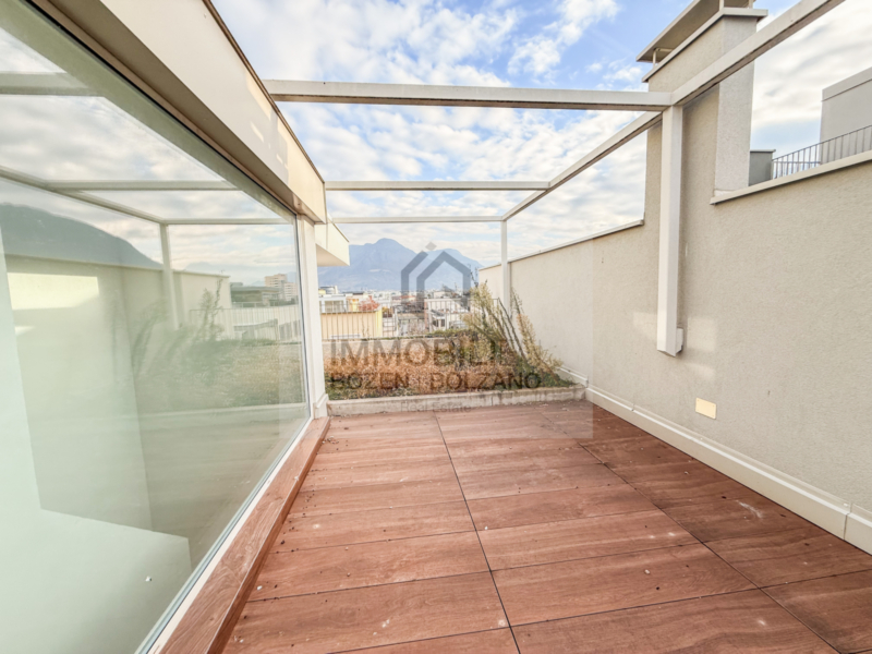 A Firmiano è in vendita questo esclusivo bilocale di nuova costruzione con classe energetica A. L’immobile è situato al 5° piano di un moderno edificio residenziale e si distingue per l’esposizione est-ovest, che garantisce ambienti luminosi e un elevato comfort abitativo. L’appartamento dispone di una superficie commerciale di circa 82,60 mq e presenta una distribuzione degli spazi ben studiata. L’appartamento dispone di un ingresso, un soggiorno con angolo cottura, un piccolo corridoio, una camera da letto, un bagno finestrato, un ripostiglio e due balconi. Tramite una scala interna si accede inoltre alla terrazza panoramica privata, che offre uno spazio esclusivo all’aperto. Una cantina è inclusa nel prezzo di vendita. Box garage di diverse dimensioni sono disponibili separatamente. L’appartamento è convenzionato, c’è la possibilità di togliere il vincolo.