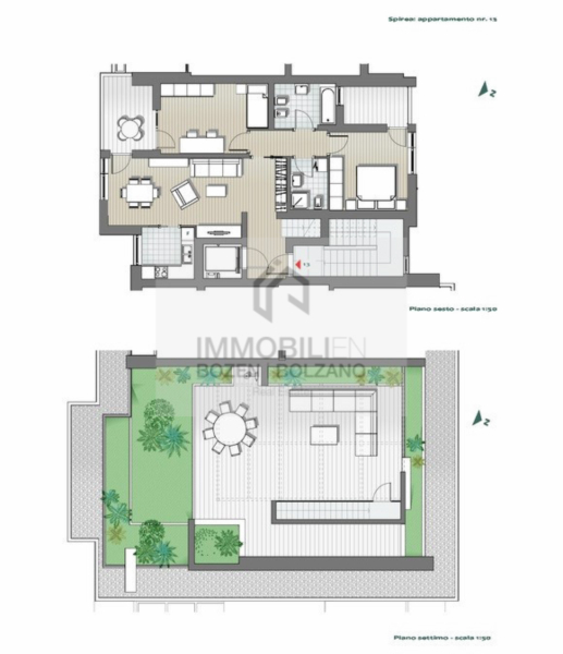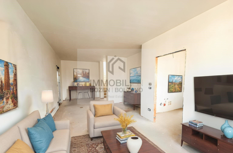 A Firmiano è in vendita questo esclusivo trilocale di nuova costruzione con classe energetica A. L’immobile è situato al 6° piano di un moderno edificio residenziale e si distingue per l’esposizione nord-sud, che garantisce ambienti luminosi e un elevato comfort abitativo. L’appartamento dispone di una superficie commerciale di circa 122 mq e presenta una distribuzione degli spazi ben studiata. L’ascensore conduce direttamente all’interno dell’abitazione, composta da un ingresso con corridoio, un ampio soggiorno con angolo cottura, un altro corridoio, due camere da letto, due bagni e due balconi. Completano la proprietà una terrazza e un piccolo balcone. Tramite una scala interna si accede inoltre alla terrazza panoramica privata, che offre uno spazio esclusivo all’aperto. Una cantina è inclusa nel prezzo di vendita. Box garage di diverse dimensioni sono disponibili separatamente. L’appartamento è convenzionato, c’è la possibilità di togliere il vincolo.