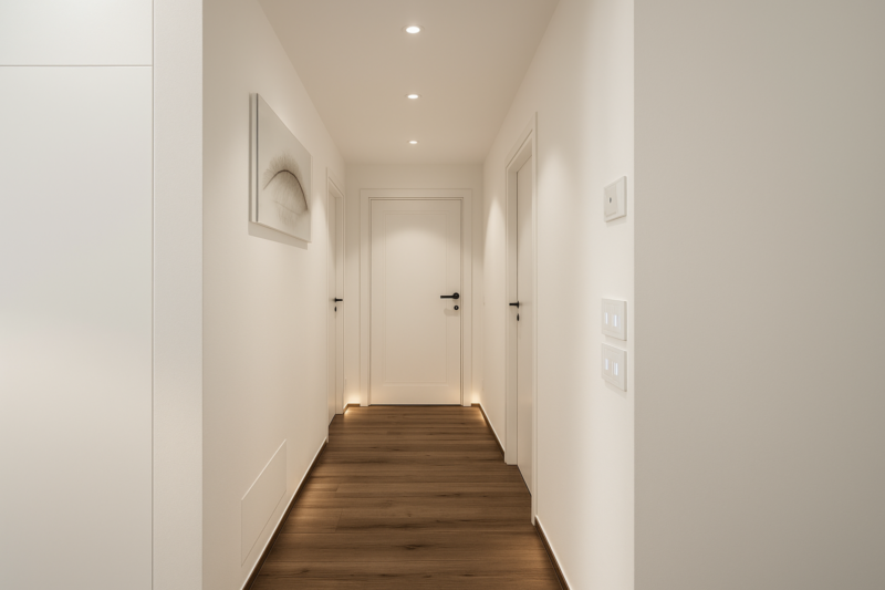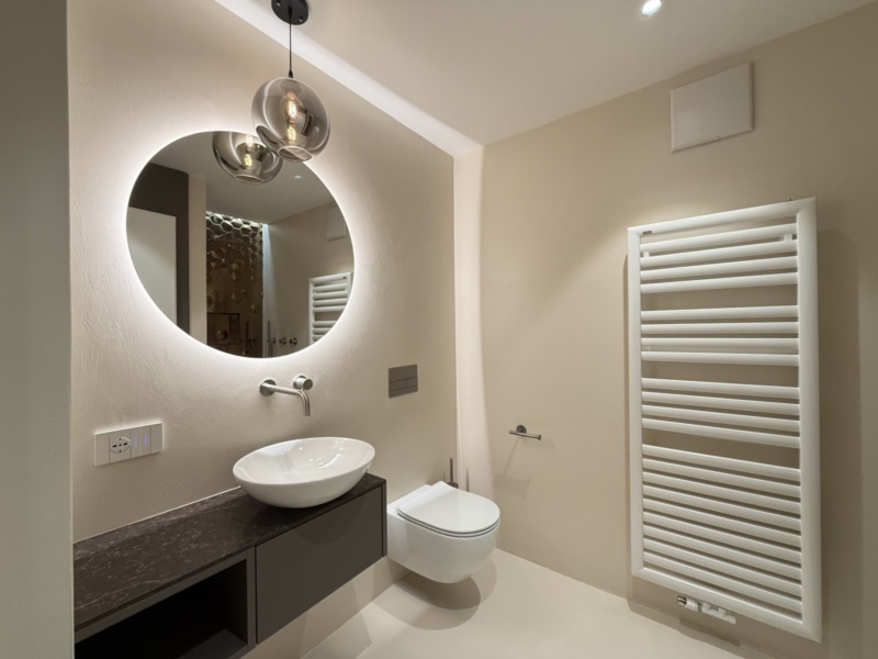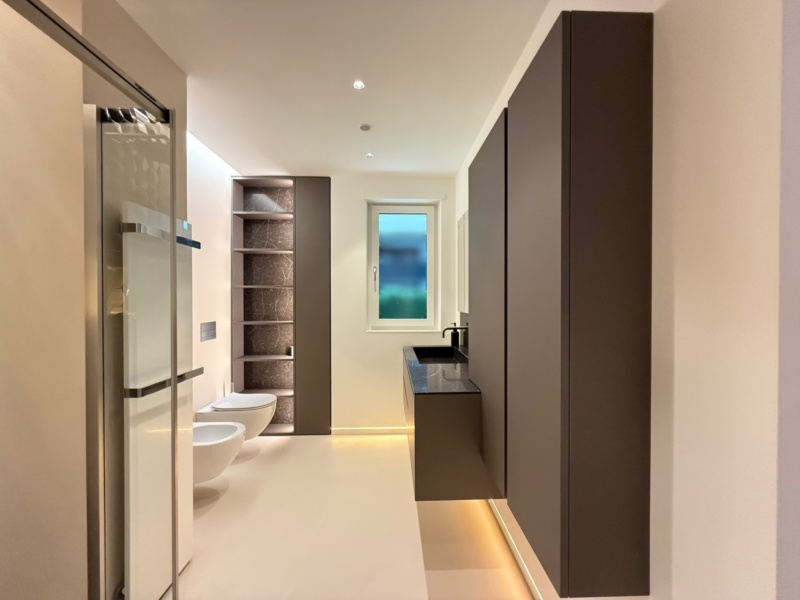 La combinazione di illuminazione indiretta, materiali pregiati e una distribuzione armoniosa degli spazi conferisce all’appartamento un’atmosfera accogliente e sofisticata. Grazie al riscaldamento a pavimento e al sistema di climatizzazione caldo/freddo, il clima interno è sempre perfettamente regolato durante tutto l’anno.