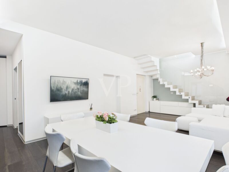 Gries — Ultimo piano su due livelli in palazzina storica (1932), finemente ristrutturato in chiave contemporanea.