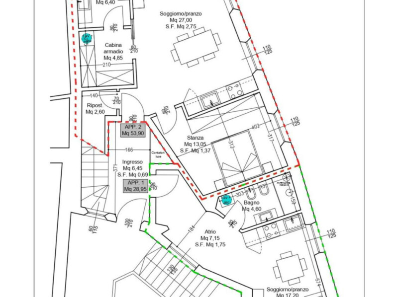 L’appartamento è libero su tre lati e così suddiviso: ingresso, soggiorno con angolo cottura e zona notte e bagno finestrato.