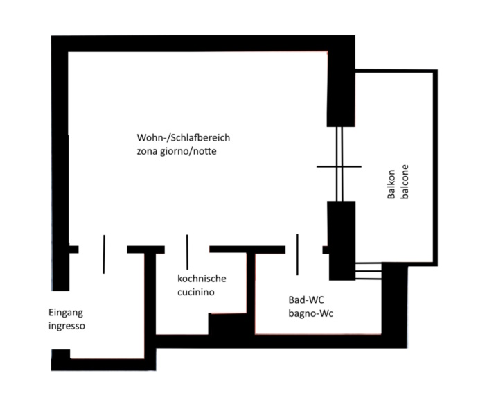 L'appartamento, il quale è stato risanato 20 anni fa, si trova al 5° piano, con ascensore nuovo. Dispone di ingresso, zona giorno/notte, cucinino, doccia-Wc, balcone con vista e sole, cantina.