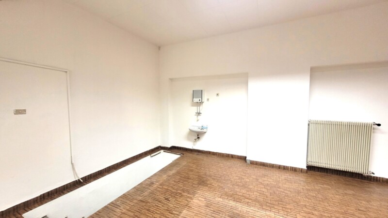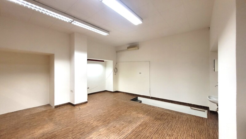 Abbiamo in locazione un locale negozio (ca. 46 mq negozio) con vetrina, situato al piano terra, con grande magazzino (ca. 55 mq lordi) sottostante. È presente un allacciamento idrico con lavandino.