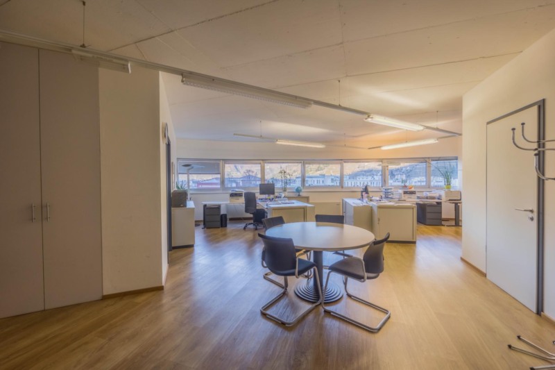Le ampie superfici vetrate garantiscono molta luce naturale e creano un'atmosfera di lavoro luminosa e piacevole, che favorisce la produttività e il comfort. L'arredamento è di alta qualità e contemporaneo, il che conferisce all'ufficio un aspetto professionale sia dal punto di vista funzionale che estetico.