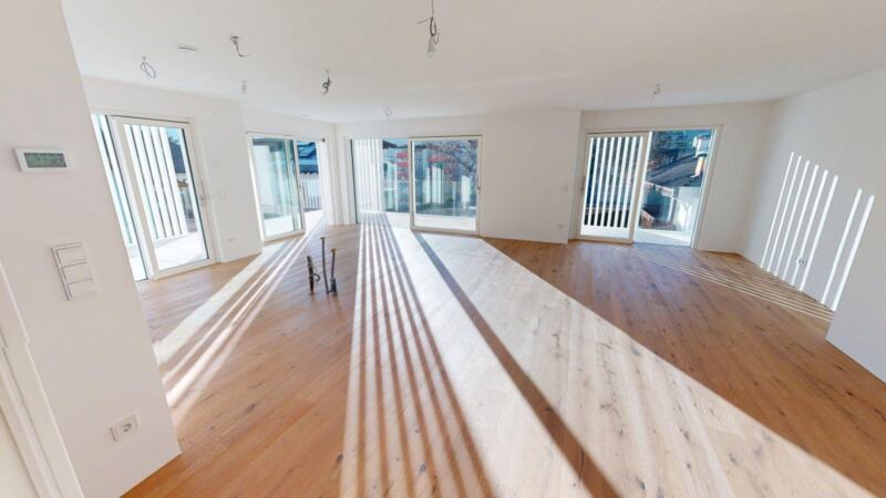 Questo attico al secondo piano è composto da ingresso, soggiorno e zona pranzo, tre camere da letto e due bagni. Completano l'offerta una terrazza e una cantina. Sono disponibili garage al piano interrato a un costo aggiuntivo.