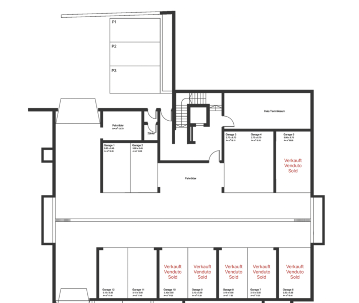 Questo quadrilocale è composto da un soggiorno/cucina, tre camere da letto, due bagni, un WC diurno, un'ampia terrazza e una spaziosa cantina. Un garage può essere acquistato separatamente.