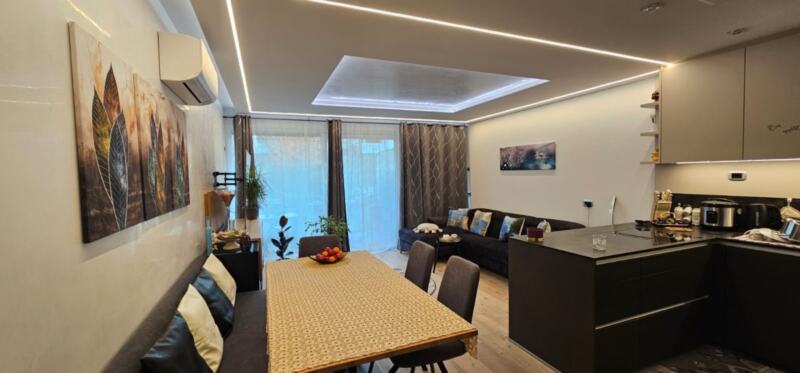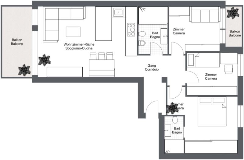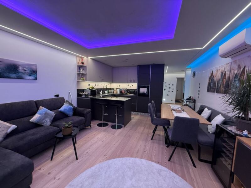 Il luminoso soggiorno con mobili su misura rappresenta il cuore della casa e si integra armoniosamente con la cucina abitabile moderna, completamente attrezzata e funzionale. Tre camere da letto e due eleganti bagni offrono ampi spazi per la famiglia, ospiti o un comodo home office. Una cantina garantisce ulteriore spazio di deposito. Particolare attenzione è stata riservata ai dettagli di pregio: numerosi elementi di illuminazione creano un’atmosfera suggestiva, mentre il sistema Smart Home, l’aria condizionata e l’impianto centralizzato di aspirazione assicurano il massimo comfort abitativo. L’ampia terrazza invita a momenti di relax all’aperto e offre accesso diretto al curato giardino condominiale. Per le auto sono disponibili posti esterni comuni; un box garage può essere acquistato separatamente.