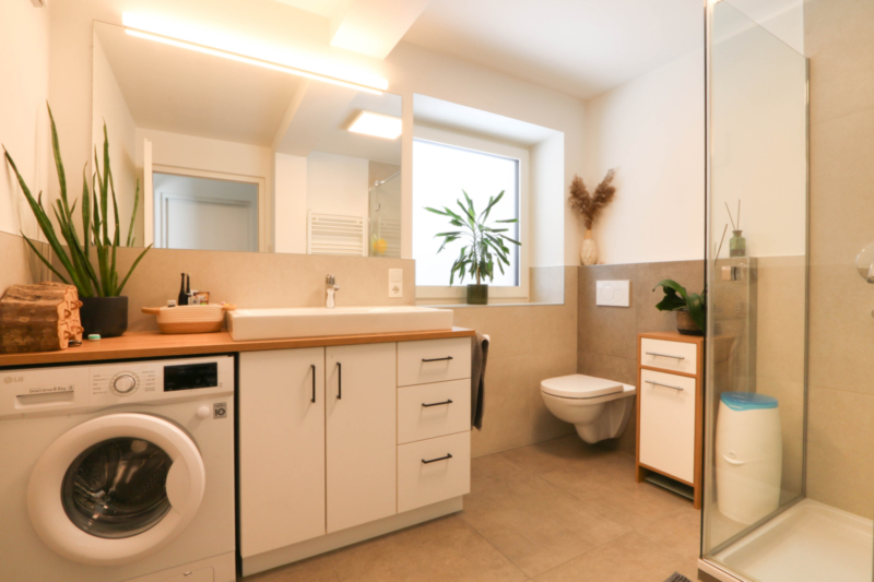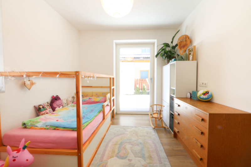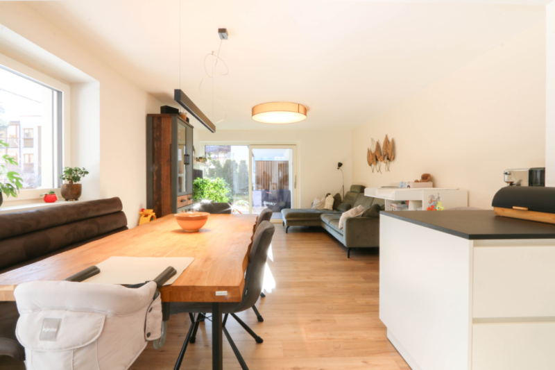 L’unità abitativa è composta da due camere da letto, un luminoso soggiorno con zona pranzo e un bagno moderno. Completano l’offerta una cantina e un posto auto esterno.