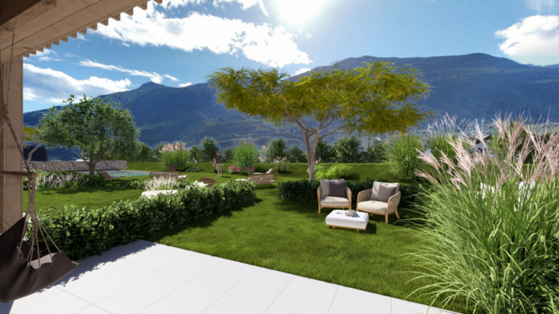 Und wie bei jeder Einheit: Die Gemeinschaftsfläche mit Wiese und solarbetriebener Wasserfläche steht Ihnen jederzeit offen – ein Ort der Ruhe, Form und Nachhaltigkeit.