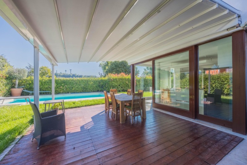 Questa moderna villetta a schiera angolare convince per la sua costruzione di alta qualità e la disposizione degli spazi ben studiata, che unisce perfettamente comfort abitativo e stile. Un punto di forza particolare è la piscina privata che, insieme all'ampio giardino ben curato, offre un rifugio ideale per trascorrere ore di relax all'aperto. L'ampia terrazza è perfetta per trascorrere piacevoli serate estive e organizzare grigliate.
