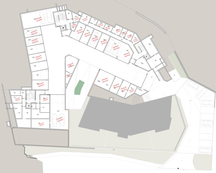 I posti auto in garage nel seminterrato possono essere acquistati separatamente come opzione (garage box: 35.000,00 euro; garage box doppio: 58.000,00 euro).