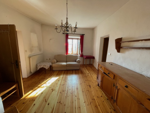 L'unità abitativa esistente offre una solida base per un insediamento immediato o per una ristrutturazione personalizzata. È composta da una scala di accesso con balcone, ingresso, cucina, soggiorno con stufa in maiolica, camera da letto e un ripostiglio. La casa è completata da ampie cantine a volta che offrono abbondante spazio di stoccaggio o spazio per hobby..