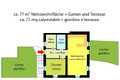 L'appartamento ha una superficie abitabile netta di circa 77 m² e offre una spaziosa camera da letto, una cucina abitabile luminosa e aperta, un bagno moderno e uno studio separato. Un vero punto di forza sono i due piccoli giardini privati e la terrazza, che creano ulteriore spazio abitativo all'aperto e invitano al relax. L'offerta è completata da una spaziosa cantina che offre ampio spazio di stoccaggio.