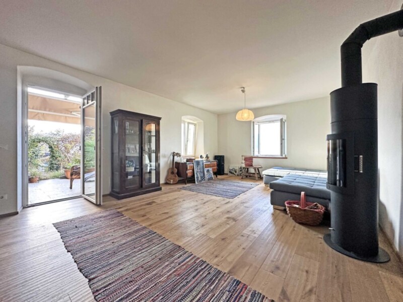 Nel corso della ristrutturazione sono state installate finestre con tripli vetri, nelle camere e nella cucina abitabile è stato posato un pavimento in parquet di alta qualità e il bagno è stato rivestito con piastrelle di grande stile. Il riscaldamento a pavimento garantisce un piacevole comfort in tutto l'appartamento. La cucina di alta qualità e un accogliente stufa a legna nella zona giorno sottolineano il carattere esclusivo di questo immobile.