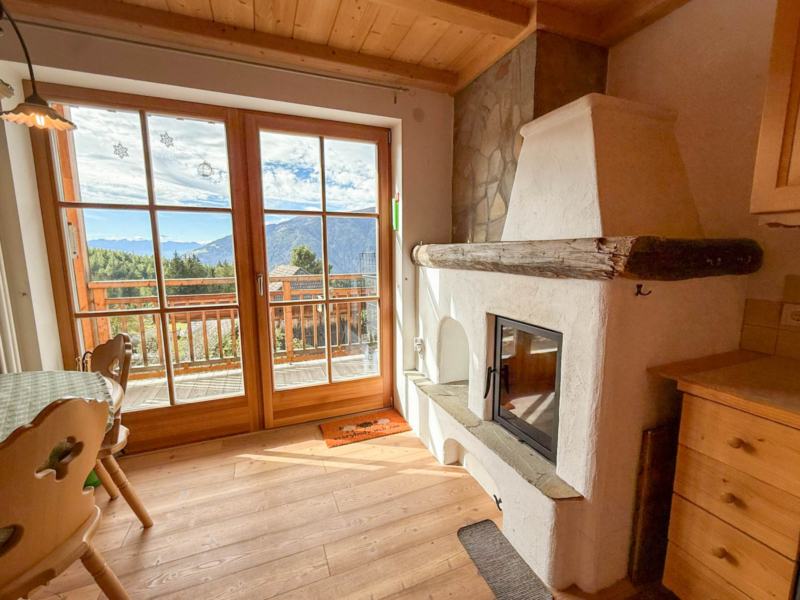 L’appartamento colpisce per il suo stile tirolese tradizionale, caratterizzato da pregiati elementi in legno che creano un’atmosfera calda e accogliente. La stufa a legna diffonde un piacevole tepore nelle giornate più fredde e sottolinea il carattere alpino di questa proprietà unica. Dal balcone soleggiato si gode una vista panoramica mozzafiato sulle montagne circostanti.