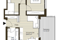 La zona giorno, progettata in modo aperto, offre accesso diretto alla terrazza, creando un ambiente luminoso e accogliente. L’unità dispone di due camere da letto e di un bagno moderno, integrato in modo pratico nel layout complessivo.
