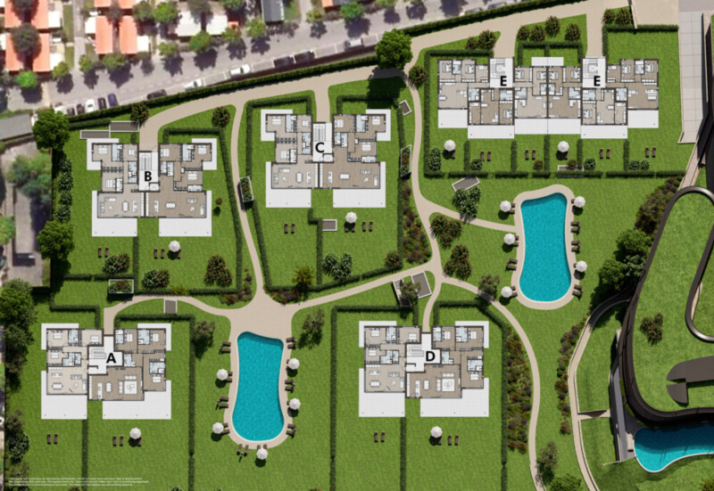 Un vano scala con finiture di alta qualità ed un curato allestimento del giardino completano l´aspetto generale del complesso. È compreso per ogni unità un garage con almeno due posti auto.