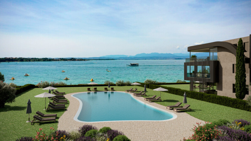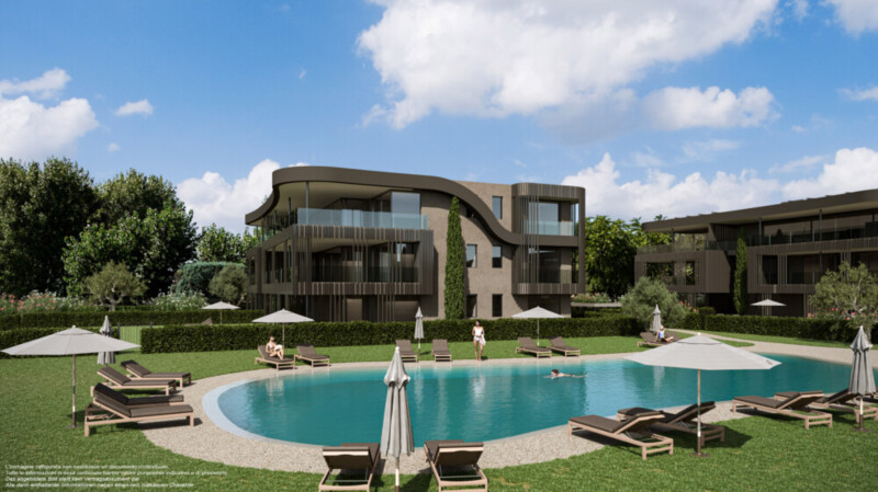 Direttamente sul lago, in posizione privilegiata, stanno sorgendo cinque edifici immersi nel verde di un grande parco.