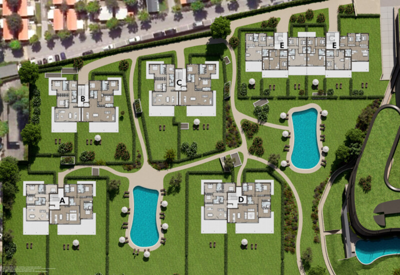 Un vano scala con finiture di alta qualità ed un curato allestimento del giardino completano l´aspetto generale del complesso di lusso. È compreso per ogni unità un garage con almeno due posti auto.