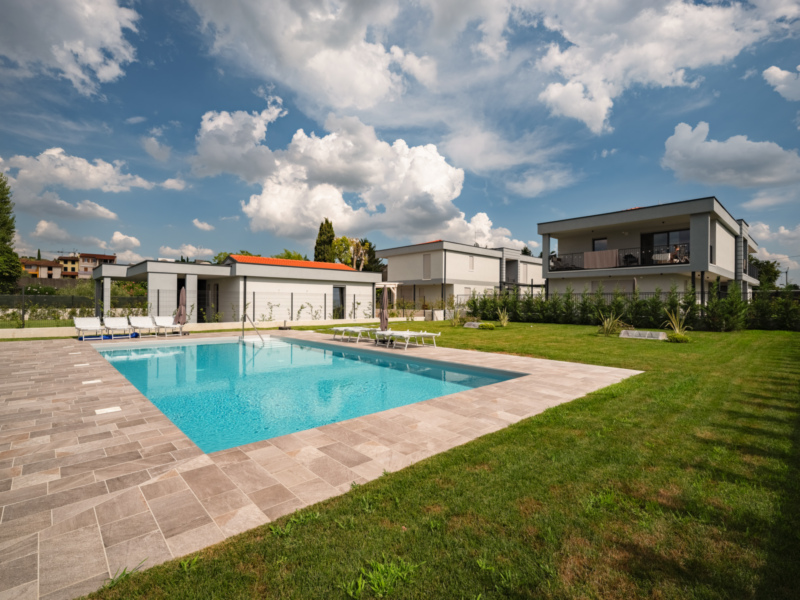 A Lazise proponiamo in vendita un nuovo complesso immobiliare a 900 Mt dal centro storico di Lazise e comodo a tutti i servizi.La costruzione è composta da 4 ville bifamiliari con due unità immobiliari ciascuna.