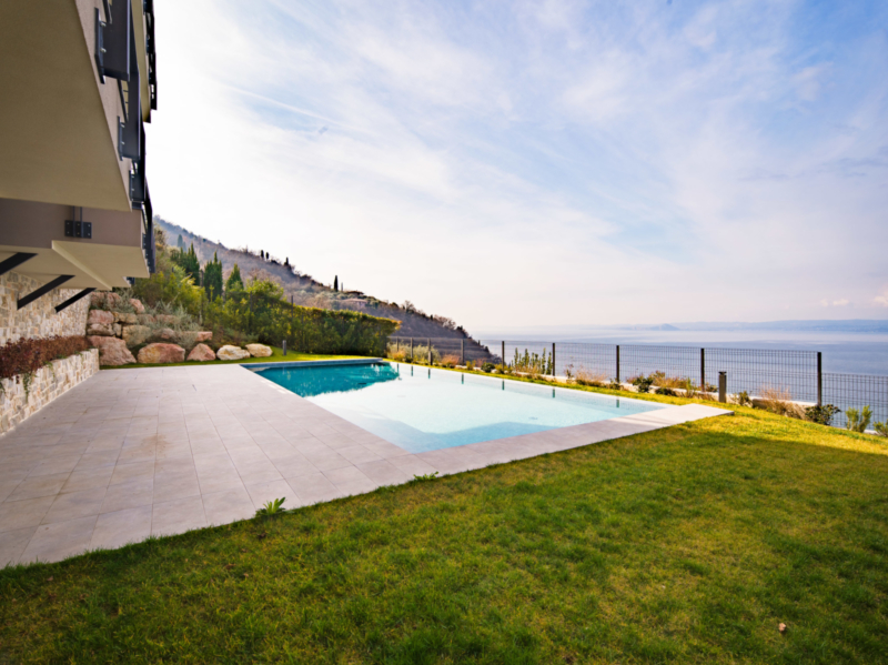 L’appartamento, luminoso e accogliente, è caratterizzato da ampie vetrate panoramiche con vista aperta sul lago. L’abitazione comprende una spaziosa zona living con cucina a vista e area pranzo, tre confortevoli camere da letto, tre moderni bagni e una pratica lavanderia. Un dettaglio di pregio: dal giardino privato si accede direttamente alla raffinata area piscina, ideale per momenti di relax sotto il sole del lago.