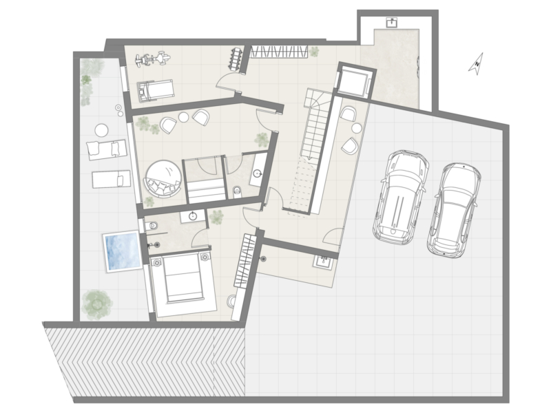 La villa verrà realizzata secondo lo standard ad alta efficienza energetica CasaClima A+, offrendo il massimo comfort abitativo su tre livelli: due piani fuori terra e un ampio piano interrato. Tutti i piani saranno collegati da un ascensore privato.
