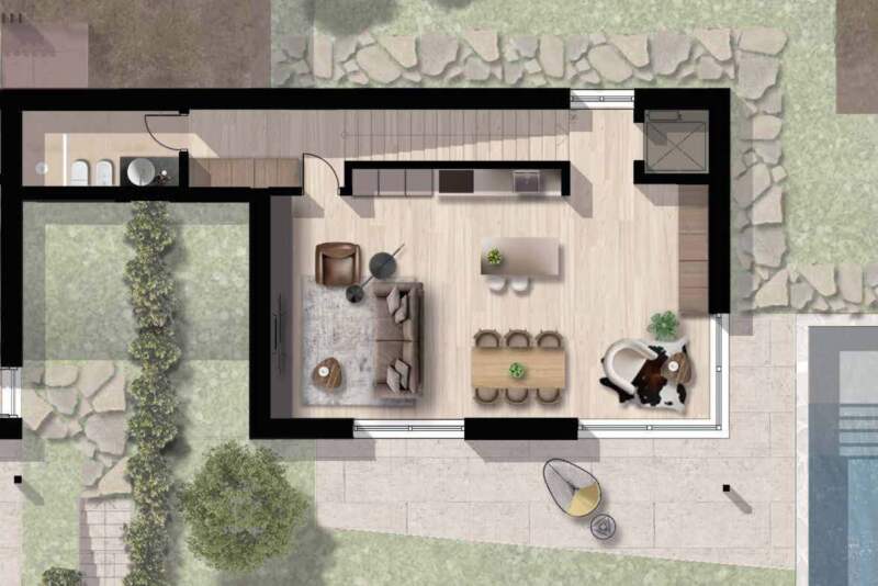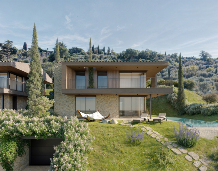 La residenza è orientata per sfruttare al meglio la luce naturale e godere della vista sul lago, grazie alle ampie finestre che si aprono su portici e terrazze. La villa è dotata di garage privato, locali tecnici e un elegante guardaroba d’ingresso che conduce alla scala interna o all’ascensore privato, per un accesso comodo ai piani superiori. Al piano terra si trova un'ampia zona giorno con angolo cottura, disimpegno e bagno. Al piano primo troviamo tre camere da letto e due bagni. L’intero complesso è realizzato secondo i più moderni criteri di efficienza energetica e dotato di un impianto fotovoltaico, garantendo così un’abitazione sostenibile con bassi consumi energetici. Queste residenze, progettate con eleganza, si articolano su tre livelli, con spazi funzionali e un impatto estetico notevole. Il resort, dove lusso e privacy sono protagonisti, offre ampie zone interne e una vista panoramica unica, immerso in un contesto naturale incantevole.