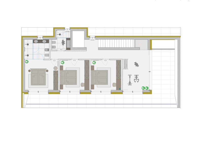 Ogni villa offrirà un lussuoso spazio abitativo su due piani, garantendo il massimo comfort. Al piano terra si trovano tre spaziose camere da letto, che colpiscono per la loro luminosità e la generosa disposizione degli ambienti. Il piano superiore è il centro della casa, con un'esclusiva camera da letto padronale dotata di bagno privato, oltre a una spaziosa cucina abitabile che colpisce per le sue dimensioni e i suoi arredi moderni. L'area del seminterrato offre un ulteriore potenziale con una sala fitness, una lavanderia, una cantina e tre posti auto sotterranei: l'ideale per una vita quotidiana comoda e funzionale.