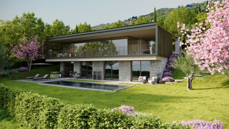 A Torri del Benaco proponiamo in vendita una bellissima e moderna villa, che si trova nelle immediate vicinanze del lago e del centro paese. La villa gode di un'incredibile e completa vista lago e si sviluppa su due livelli fuori terra e dispone anche di una grande piscina. L'immobile è un capolavoro architettonico, un mix di design moderno con elementi tradizionali. Le generose vetrate permettono alla luce del sole di entrare nelle stanze e offrono una vista mozzafiato sul lago scintillante. Nel piano di sotto si trova la zona notte, dove ci sono 3 camere da letto, tutte con accesso diretto alla terrazza e con il proprio bagno. In questo piano troviamo anche una lavanderia, un locale tecnico e un garage molto grande. Con l'ascensore o tramite le scale si raggiunge il piano superiore, dove si trova la bella zona giorno aperta, una cucina a isola e un bagno. Nel complesso, questa villa di lusso è un vero e proprio rifugio per chi cerca una fuga lussuosa e rilassante.