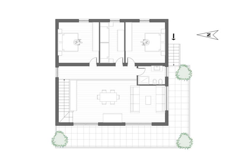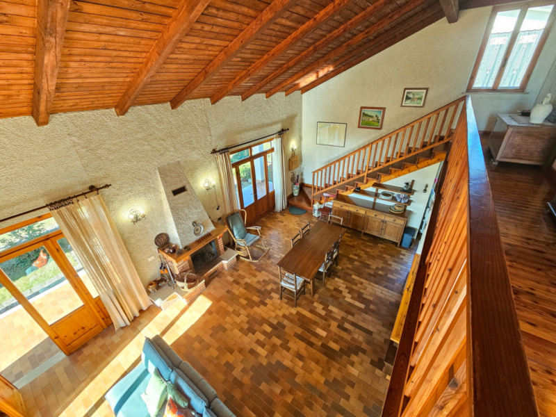 Salendo al piano primo, si apre un elegante soggiorno con cucina a vista, ideale per momenti di convivialità. La zona notte comprende tre camere da letto – due spaziose matrimoniali e una singola – oltre a un ulteriore bagno finestrato.